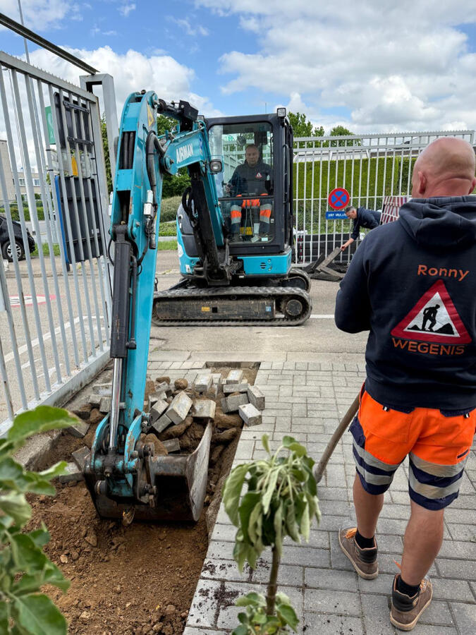 De technische assistenten van het stadswerkhuis zetten met plezier hun schouders onder dit project. Met hun hulp maken we letterlijk plaats voor meer groen in de straat. Een mooi voorbeeld van hoe praktische dienstverlening het verschil kan maken.